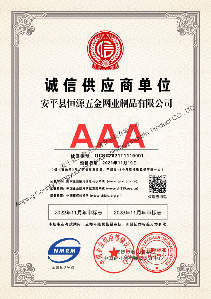 多年來,安平縣恒源五金網(wǎng)業(yè)制品有限公司堅持“科技興企、質(zhì)量立業(yè)”的經(jīng)營理念和“誠心為本、客戶至上”的合作宗旨,優(yōu)化生產(chǎn)工藝,打造優(yōu)質(zhì)產(chǎn)品,提供完善的服務(wù),受到國內(nèi)外客戶的一致好評,產(chǎn)品行銷全國各地,并出口美國、德國、韓國、日本、臺灣等國家和地區(qū)。